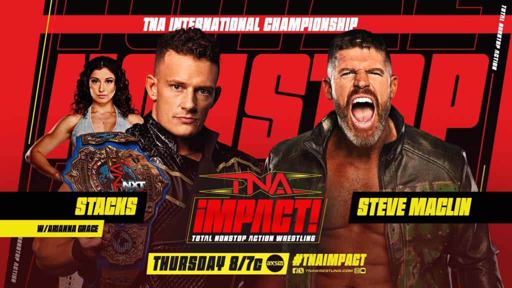 Čo ďalej? Stacks versus Steve Maclin. Ide o single match o TNA International Championship medzi týmito dvoma, ktorí sa predtým stretli počas TNA Final Resolution PPV ako súčasti tímov NXT a TNA. Stacksa do ringu doprevádzala Arianna Grace, dcéra Santina Marellu, riaditeľa T NA Impact, a samozrejme, opakovane nám komentátori pripomínajú incident medzi Ariannou a jej otcom počas už spomínaného zápasu v TNA Final Resolution.